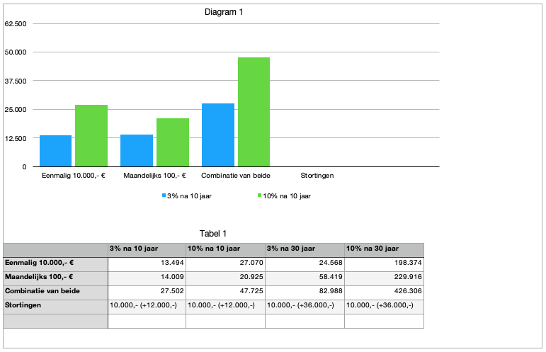 Onderstaand voorbeeld toont U de groei van een klassiek sparen aan gemiddeld 3% en de aankoop van edelmetalen aan gemiddeld 10%.